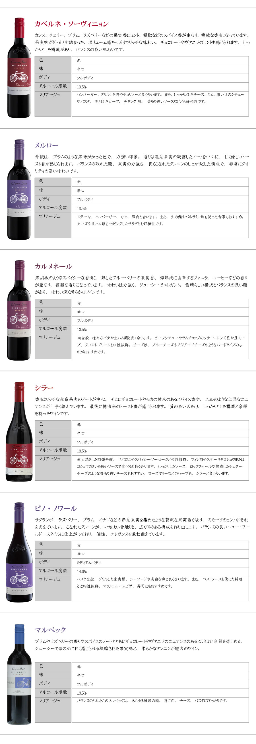 | 商品情報 | 数十万円クラスのワインのテイスティングも行うような、卓越した舌を持つワインソムリエ達が大絶賛するほどの高品質なワイン『コノスル』。ヴァラエタルシリーズは、ワイン入門者からプロまで、安心して薦められるほどの素晴らしい味わいで、ラインナップどれをとっても充分すぎる飲み応えのワインですが、その中でも、特にご自身に合った「お気に入りの一本」を見つけて頂けるよう、お客様のお好きな組み合わせでセットに出来るようにした、カスタムオーダー式のセットです。色々、試してみるのも、好きなブドウ品種だけを選ぶのも、お客様の自由!安くて美味しいコノスル。是非、お試し下さい♪ |