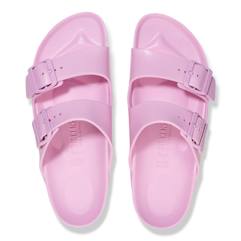 ビルケンシュトックの定番コルクサンダル Arizona/アリゾナをモデルとしたこの商品には、EVA素材が使用されています。EVAは、耐久性・耐水性に優れていて、濡れた場所でも滑りにくいことが特徴です。また、汚れても水洗いできるのでお手入れも簡単です。お肌に優しいこの超軽量ソールが、ビルケンシュトックならではの快適な履き心地をお約束します。
